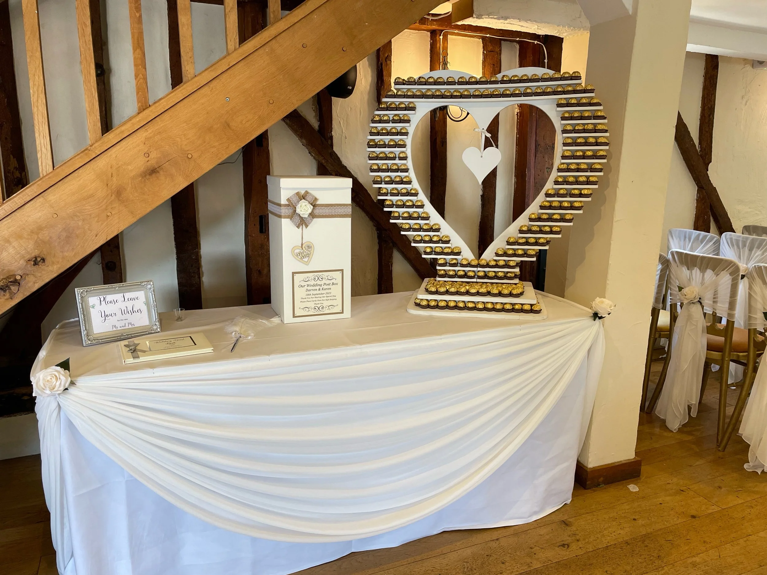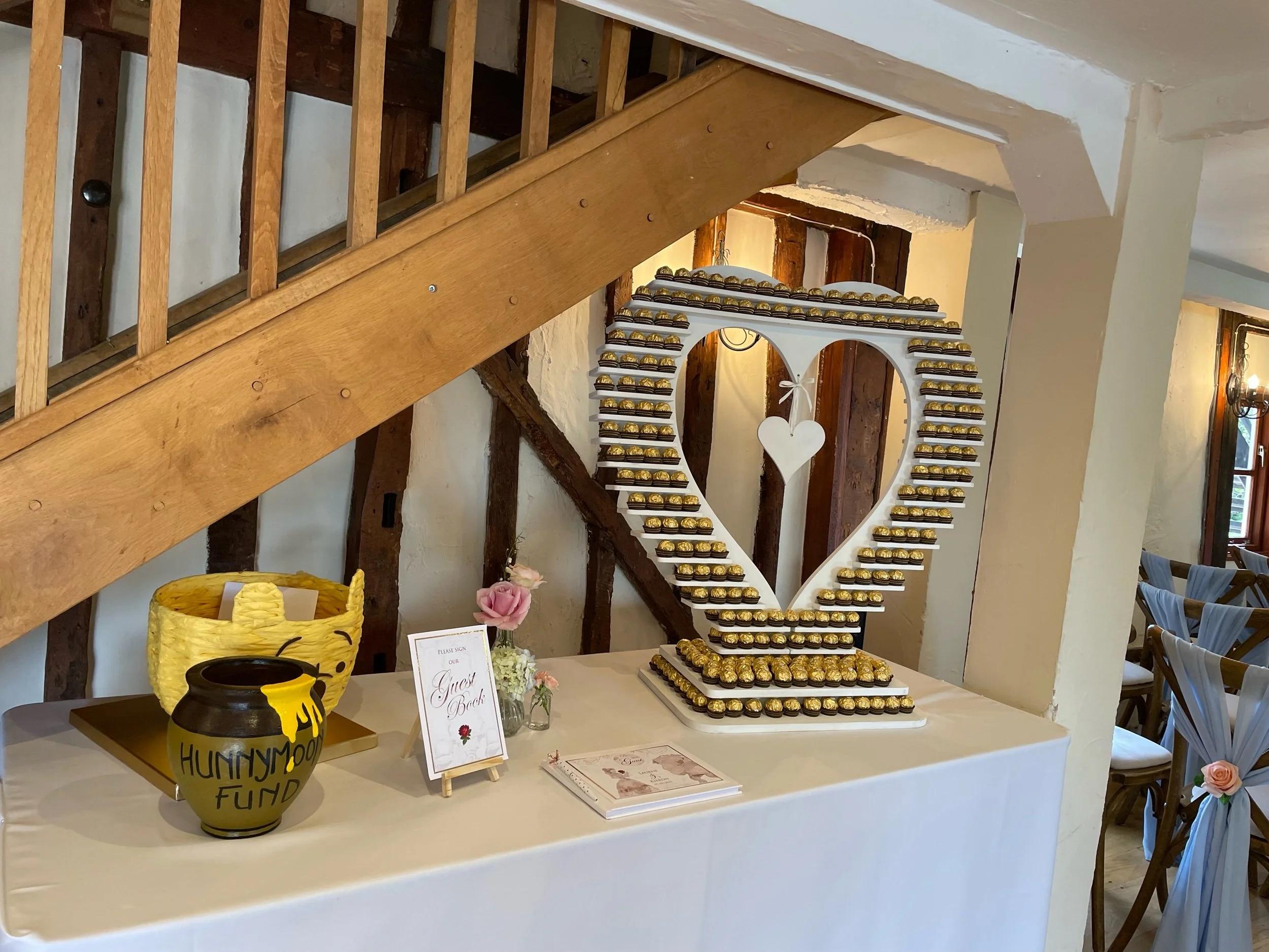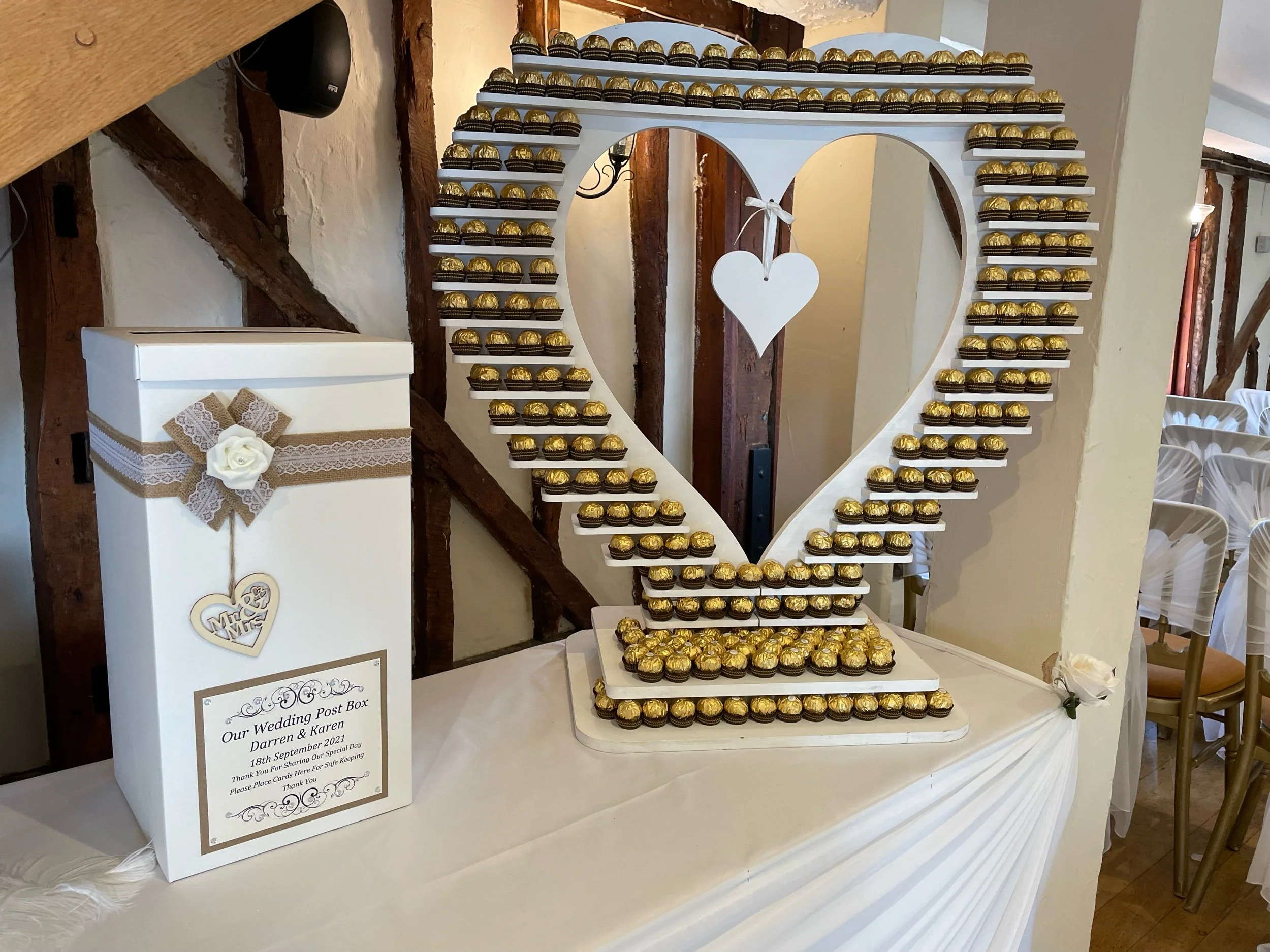 Our Ferrero Rocher stand can be delivered empty for you to add your own chocolate treats, or we can set up with one side filled with 250 Ferrero Rochers, or both sides filled will hold 500.